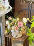参与方式:电话咨询。活动时间以当日实际安排为准。 手提篮清新自然的藤编与鲜花搭配组合仿佛是天造地设的一对,它们相互映衬。只要精心挑选合适的手提篮,并选择相应的花材,加上巧妙搭配色彩,就能轻松制作出美观且精致的手提花篮。家中摆放一篮鲜艳夺目的花朵,无疑会为生活增添一抹亮色,带来愉悦的心情