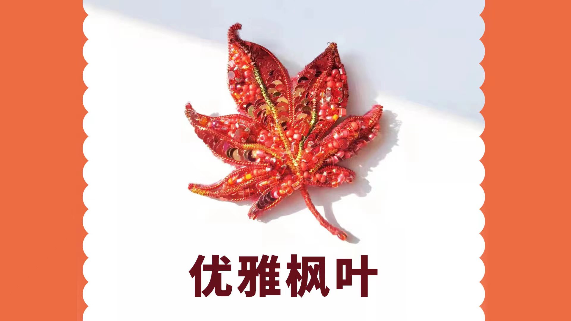 :利用基础法绣技术,制作一片深秋的枫叶法国刺绣手法一般运用在高级定制礼服和手包上,最早开始在法国和印度,手工匠人运用娴熟高超的手法和专业的的刺绣技巧制作完美精致的刺绣作品。所用到工具不复杂,只用绣绷,针和线就能制作出立体且装饰性强的各种配饰美物。